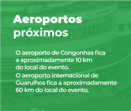 Não se preocupe se você tiver que ir ao evento diretamente de algum aeroporto, temos malex, para que você possa guardar os seus pertences, Wi-Fi gratuito e uma praça de alimentação completa, com opções veganas e vegetarianas.